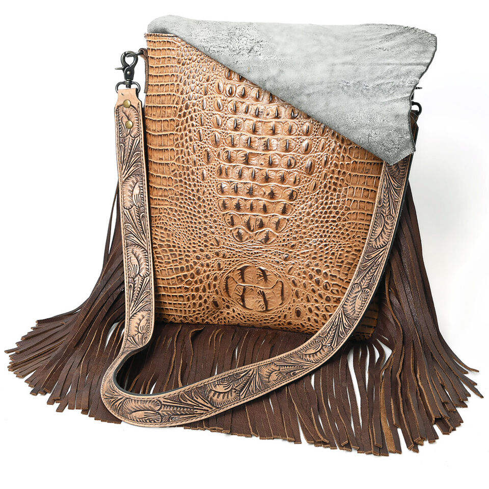 กระเป๋าคาดผมหนังวัวแบบตะวันตกคุณภาพระดับพรีเมี่ยมสำหรับผู้หญิงกระเป๋าแบบมีพู่ประดับดอกไม้สไตล์โบฮีเมียนฤดูใบไม้ร่วง