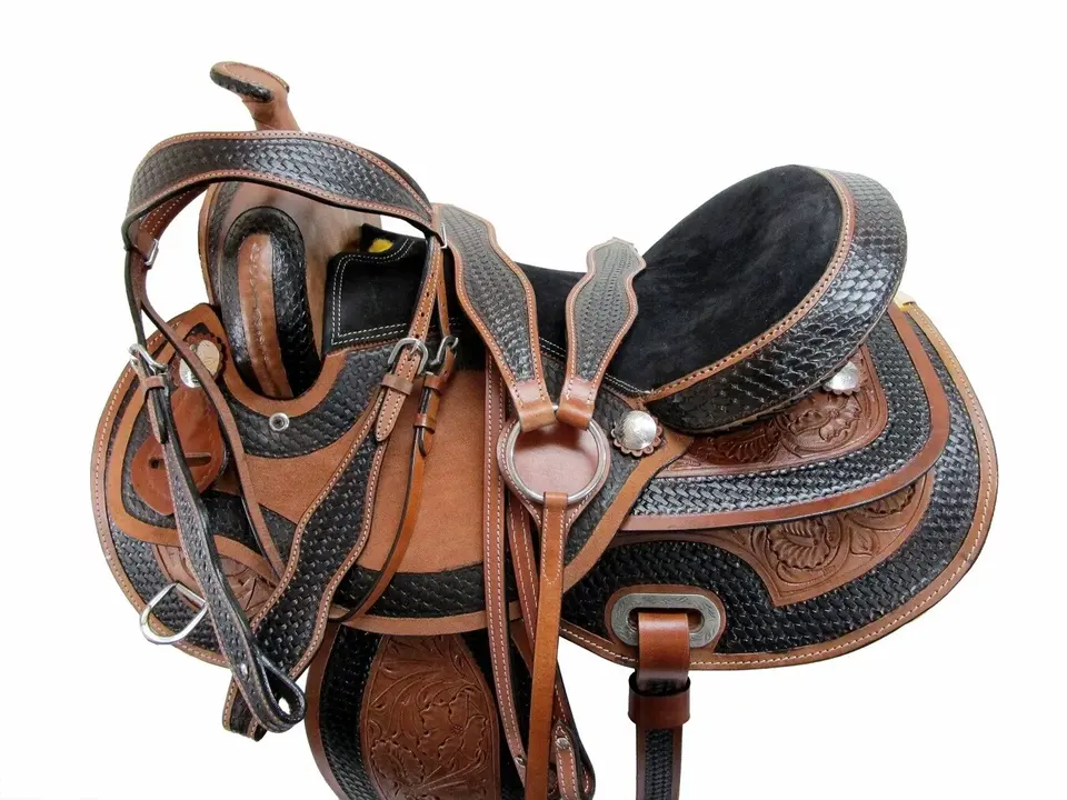 ชุดอานม้าหนังวัวแท้คุณภาพดีดีไซน์ถังตะวันตกพร้อมสีและขนาดปรับแต่งได้