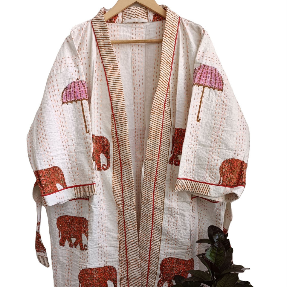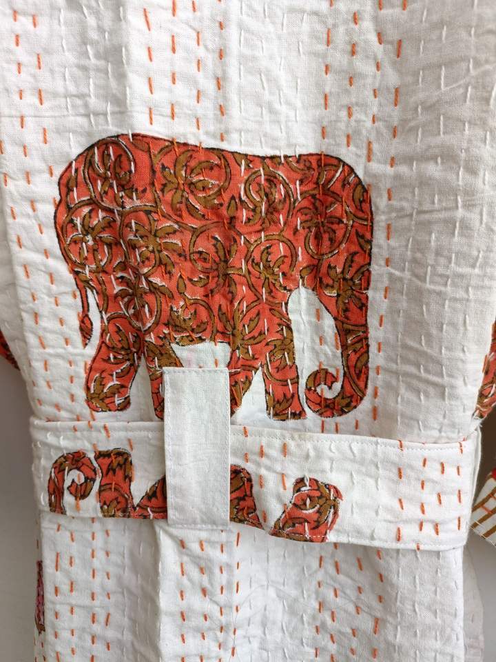 ชุดคลุมอาบน้ำชุดคลุมกิโมโนยาวถึงเข่าสำหรับผู้หญิงชุดคลุมพิมพ์ลายสัตว์ทำจากผ้าฝ้ายบริสุทธิ์ส่งตรงจากอินเดีย