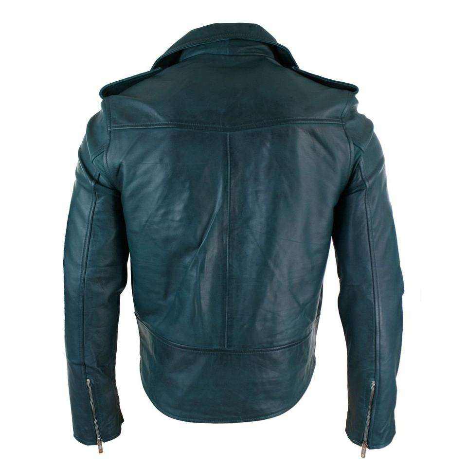 แจ็คเก็ตหนังแท้คุณภาพพรีเมียมสำหรับผู้ชาย ดีไซน์เท่ห์ ซิปหน้า ปกคอพับ หนังแกะแบบดิสเทรส ขายส่ง