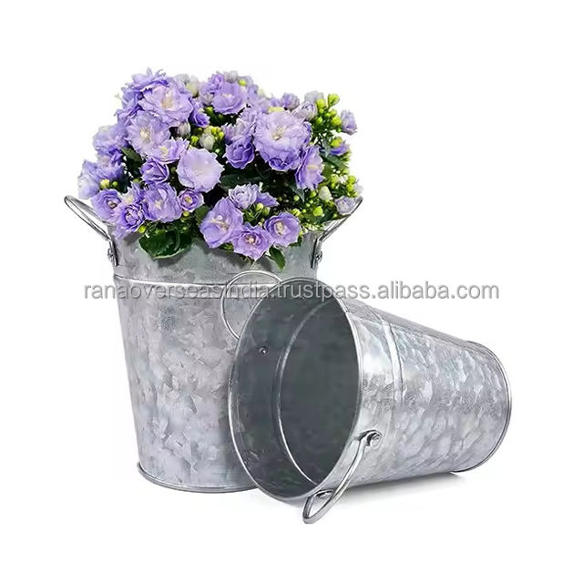 เครื่องปลูกชุบสังกะสีพร้อมด้ามจับคู่สำหรับตกแต่งบ้านและสวนหลายขนาด