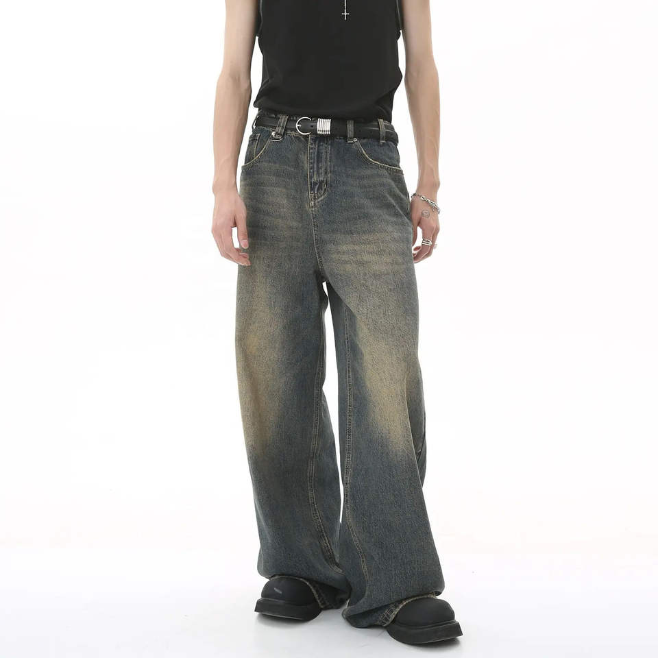 กางเกงยีนส์ขาตรงทรงหลวมสำหรับผู้ชายกางเกงยีนส์ขายาวปรับแต่งได้แบบลำลอง