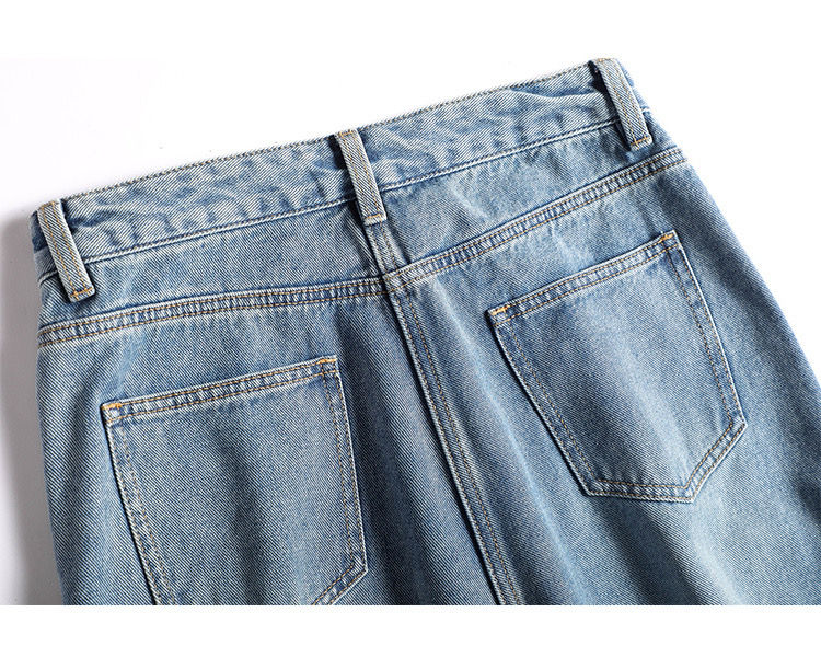 กางเกงยีนส์ขาตรงทรงหลวมสำหรับผู้ชายกางเกงยีนส์ขายาวปรับแต่งได้แบบลำลอง