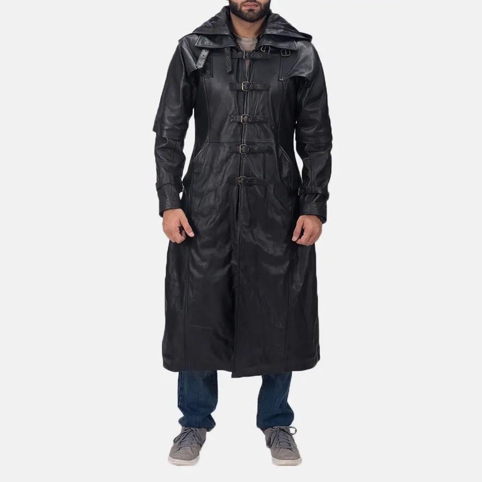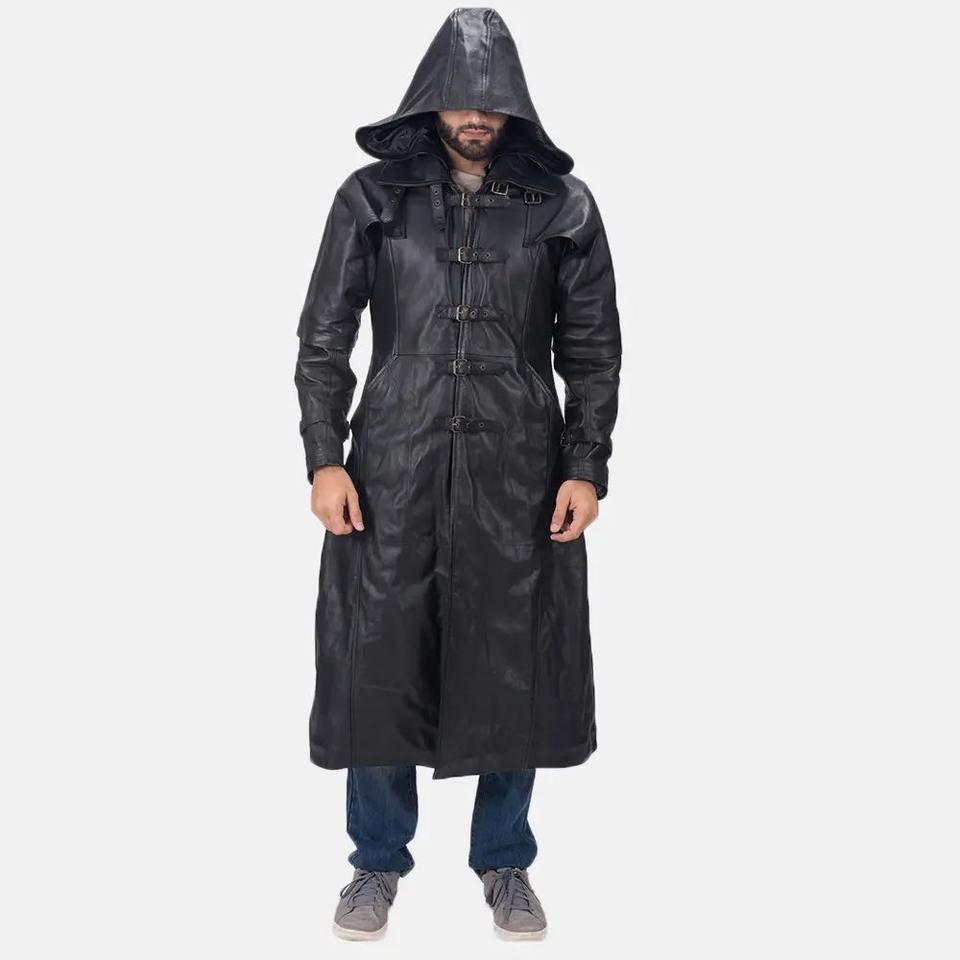 เสื้อคลุมหนังยาวของผู้ชายเสื้อแจ็คเก็ตหนังแท้