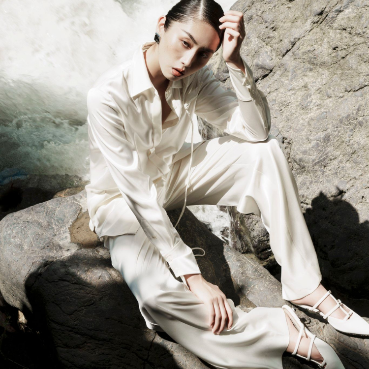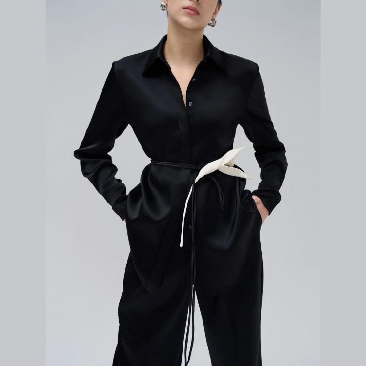 Sigrid เสื้อเบลาส์คอปกแหลมสำหรับผู้หญิงเสื้อผ้าผ้าไหมผ้าเป็นมิตรกับสิ่งแวดล้อม