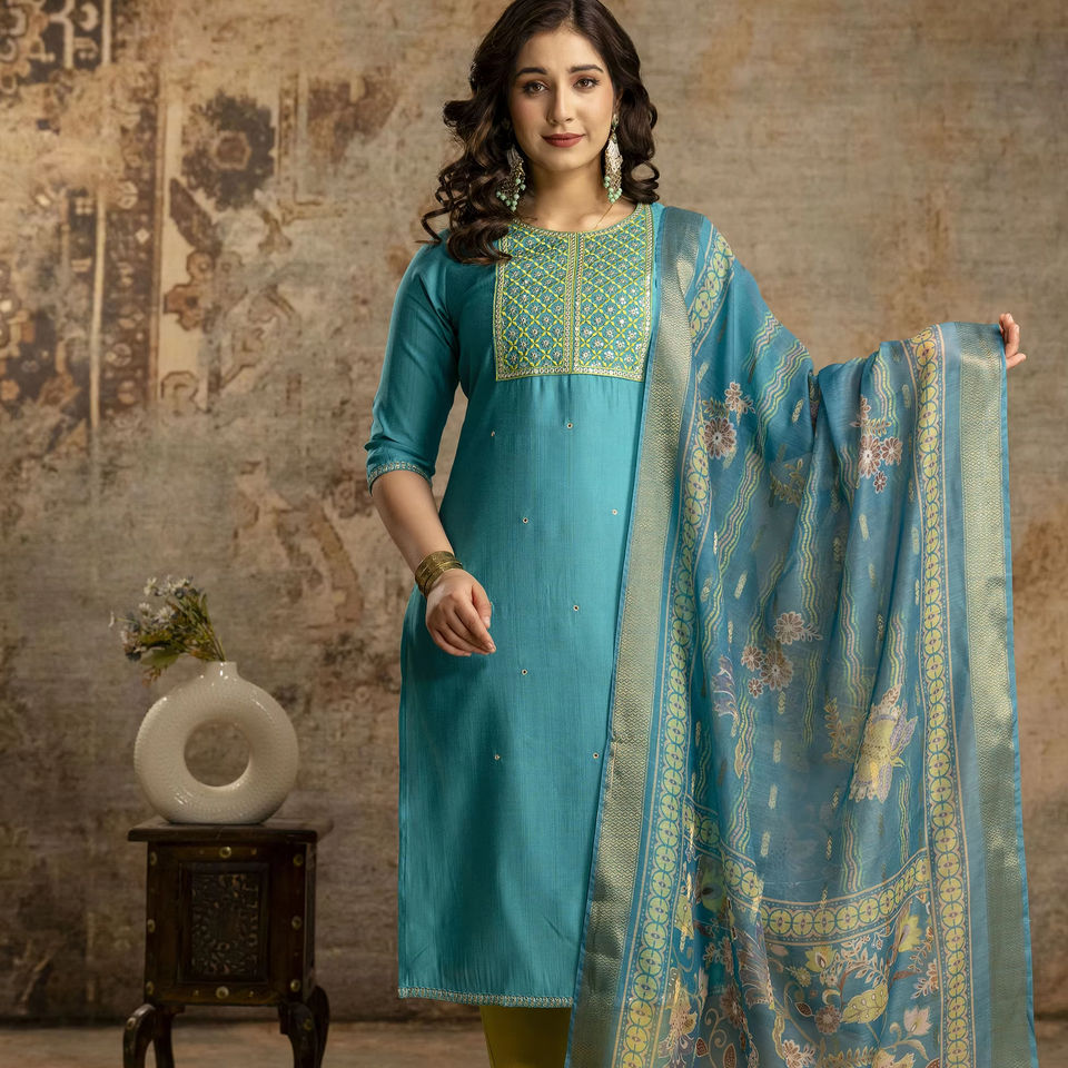 ชุดสูทสามชิ้นสไตล์อินเดียสำหรับผู้หญิง Kurti ปักลายแบบชนเผ่า