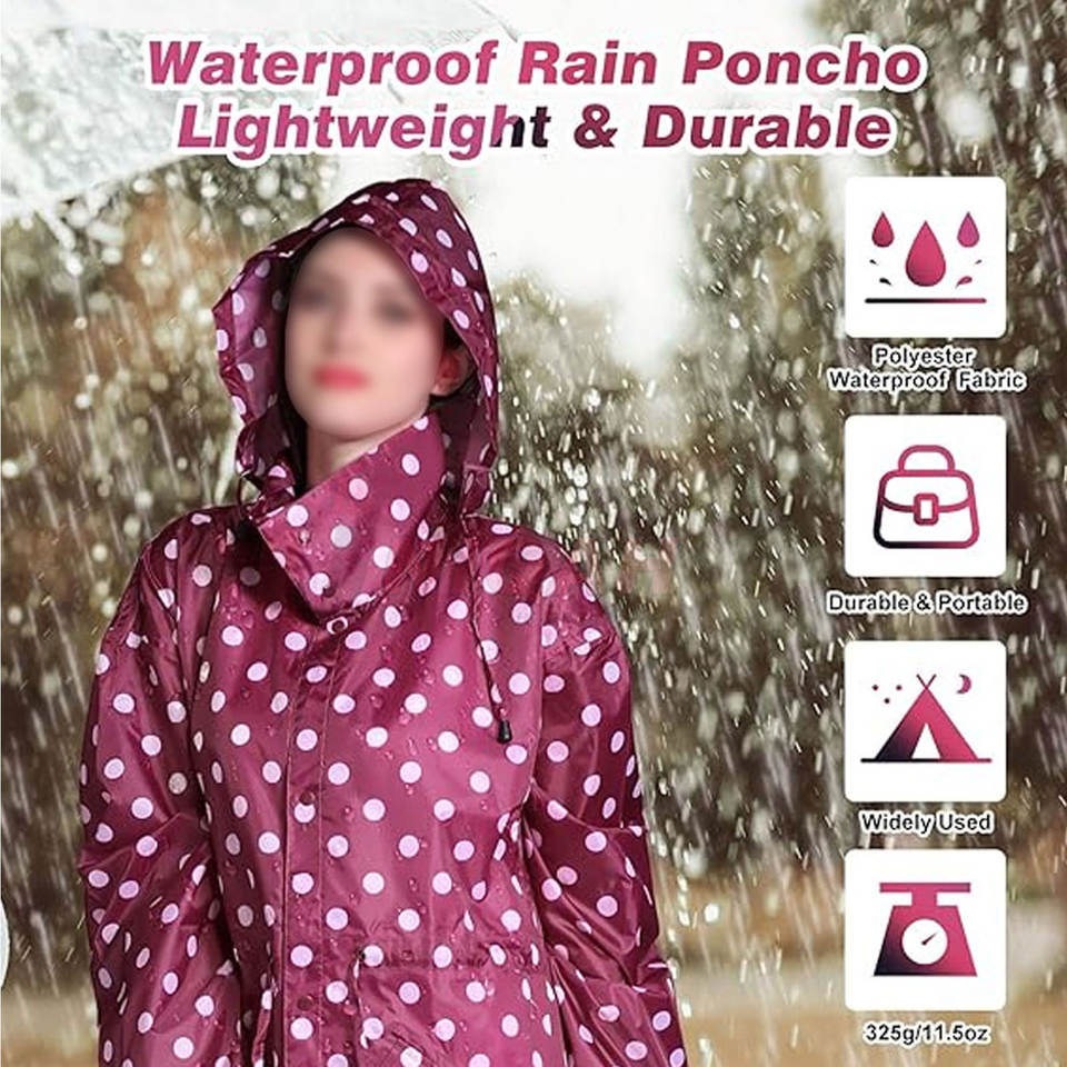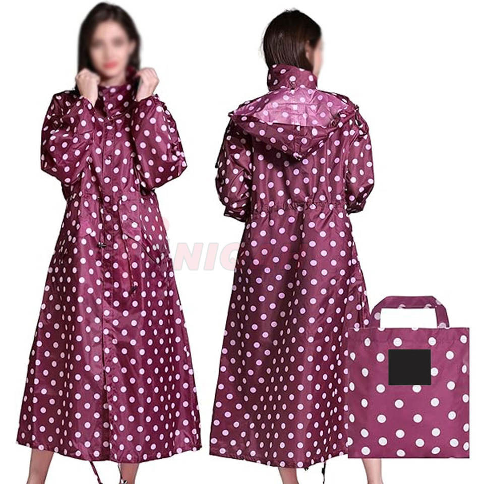 เสื้อกันฝนตัวยาวสำหรับผู้หญิงกันน้ำมีฮู้ดสีแดงมีฮู้ดสำหรับใส่กลางแจ้งปรับเอวได้