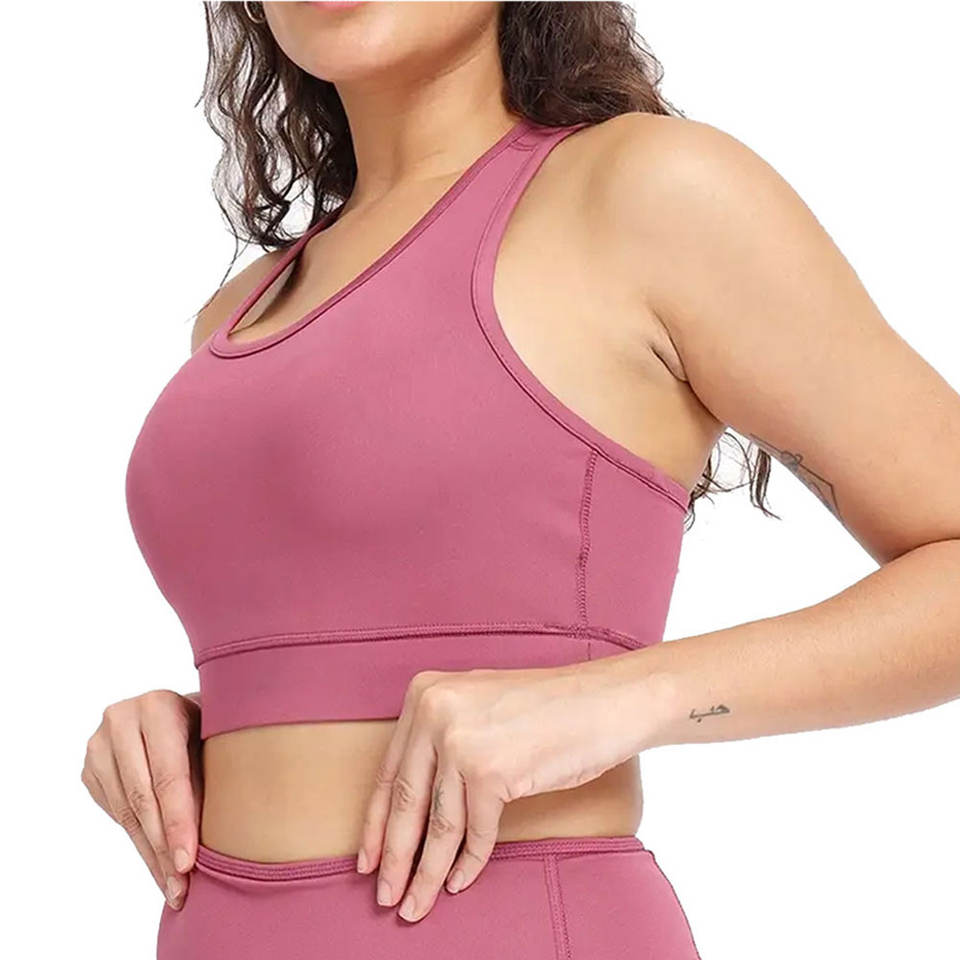 สปอร์ตบราคุณภาพพรีเมียมสำหรับผู้หญิง ใช้กลางแจ้ง ไซส์พลัส ระบายอากาศได้ดี โลโก้ด้านหน้า รองรับแรงกระแทกสูง ผลิตจากผ้าสแปนเด็กซ์/ไนลอน