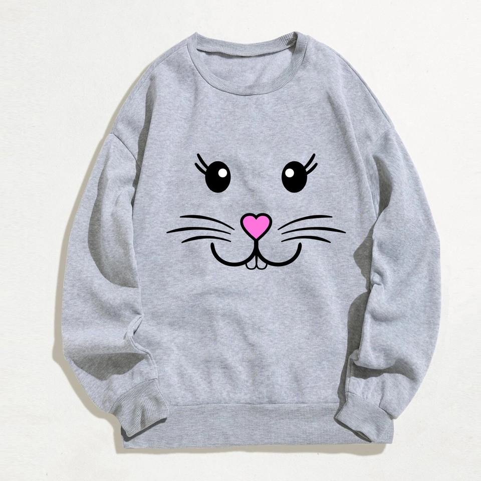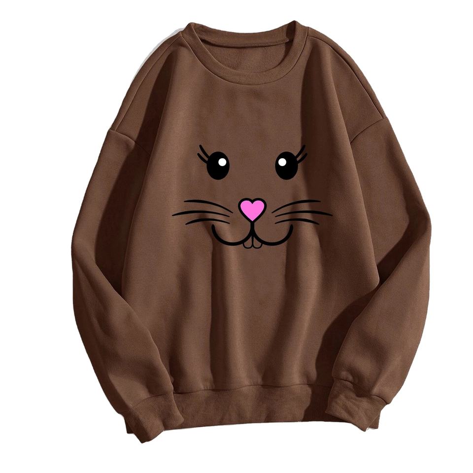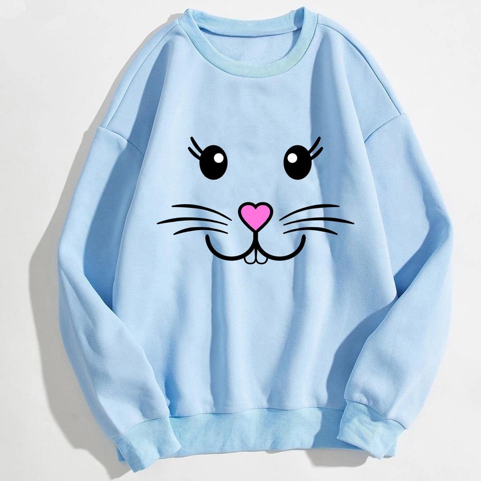 Premium Quality Women's Casual Long Sleeve Crew Neck Rabbit Printed Pullover Hoodless Women's Bodysuit