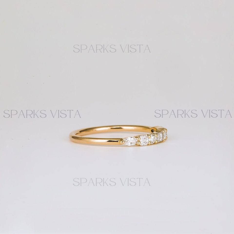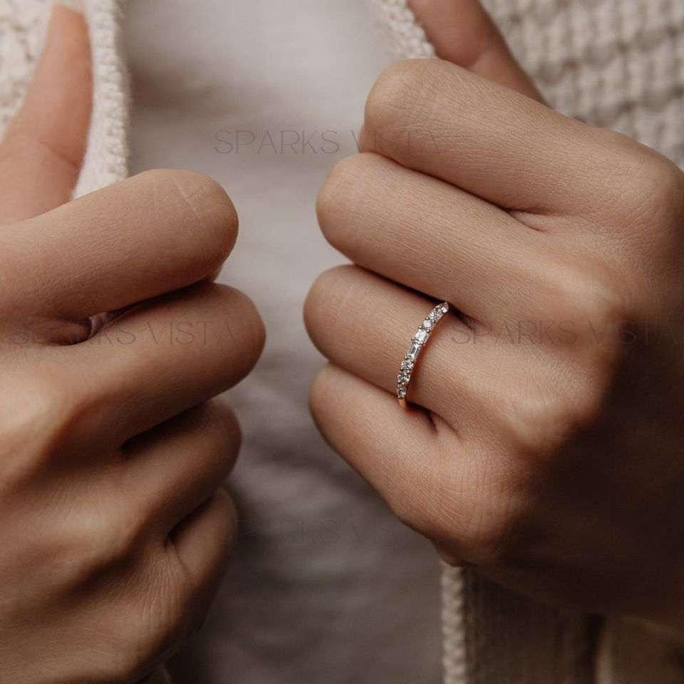 แหวนแต่งงานประดับเพชรคุณภาพระดับพรีเมี่ยมสำหรับผู้หญิงทรงเหลี่ยมสีทอง10K 14K 18K และเพชรกลมเหมาะสำหรับโอกาสพิเศษ