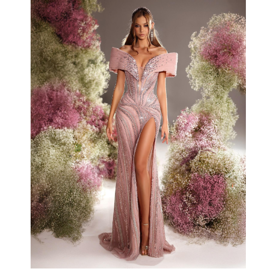 ชุดราตรีทรงเมอร์เมดยาวกรอมพื้นสำหรับผู้หญิง คุณภาพพรีเมียม ประดับด้วยลูกปัดมุก ผ้าตาข่ายระบายอากาศ ไซส์พลัส
