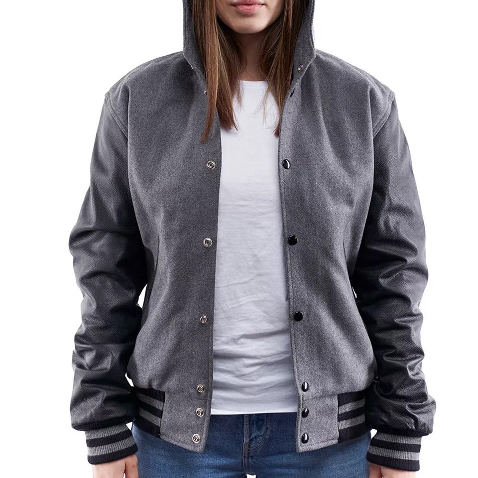 เสื้อแจ็คเก็ตตัวยาวมีฮู้ดสำหรับผู้หญิงคุณภาพระดับพรีเมี่ยมแจ็คเก็ตกีฬาเบสบอลมีตัวอักษรแบบลำลองสำหรับฤดูหนาวผลิตโดยอุตสาหกรรมชา