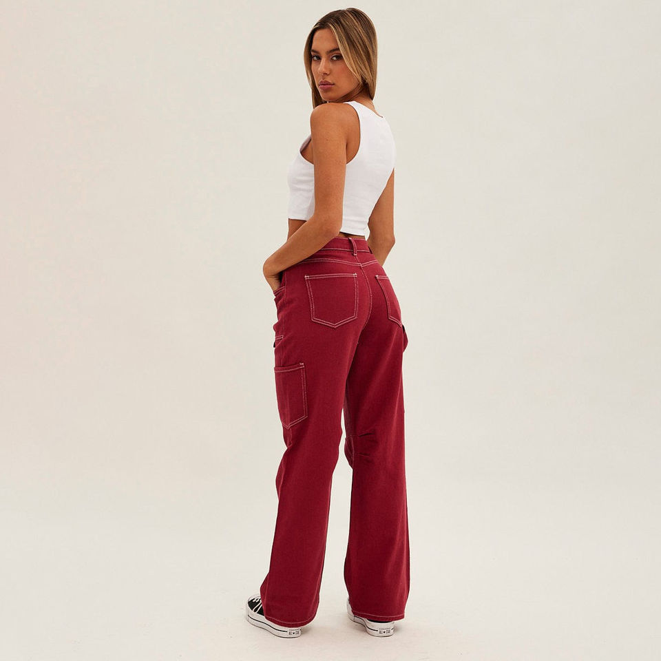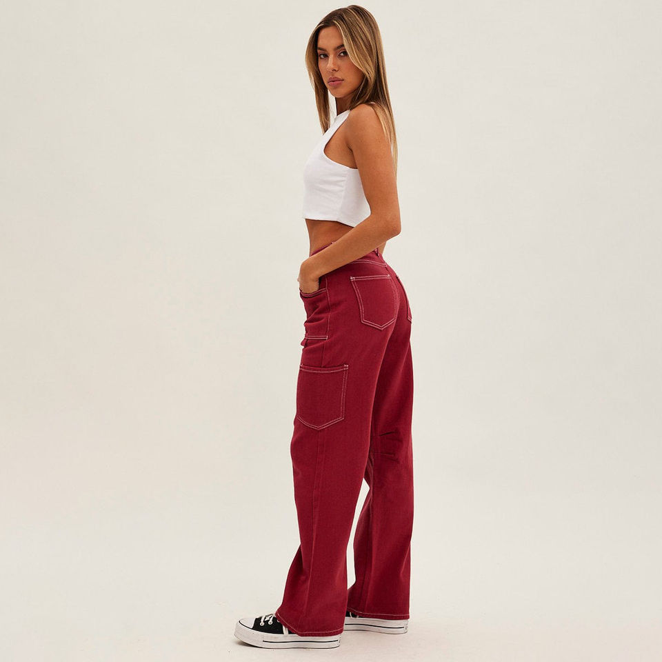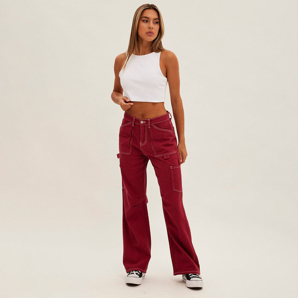 กางเกงยีนส์เดนิมทรงตรงเอวสูงสำหรับผู้หญิง คุณภาพพรีเมียม ระบายอากาศได้ดี ผลิตจากผ้าฝ้าย 100% สไตล์ลำลองวินเทจ รับผลิตแบบ OEM