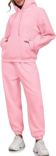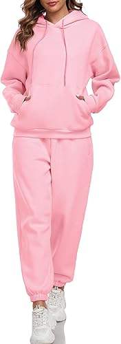 ชุดวอร์มสองชิ้นโอเวอร์ไซส์ของผู้หญิงคุณภาพพรีเมี่ยมชุดวอร์มมีฮู้ดเสื้อสเวตเชิ้ตกางเกงวิ่งสเวตเตอร์มีลายปักสีพื้นสำหรับฤดูหนาว