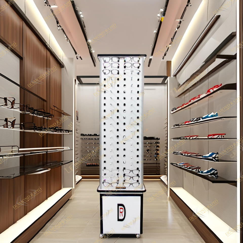 ขาตั้งแบบหมุนสำหรับตั้งพื้นจอแสดงผลออปติคอลทำจากไม้แท่งล็อกสำหรับร้านค้าออปติก
