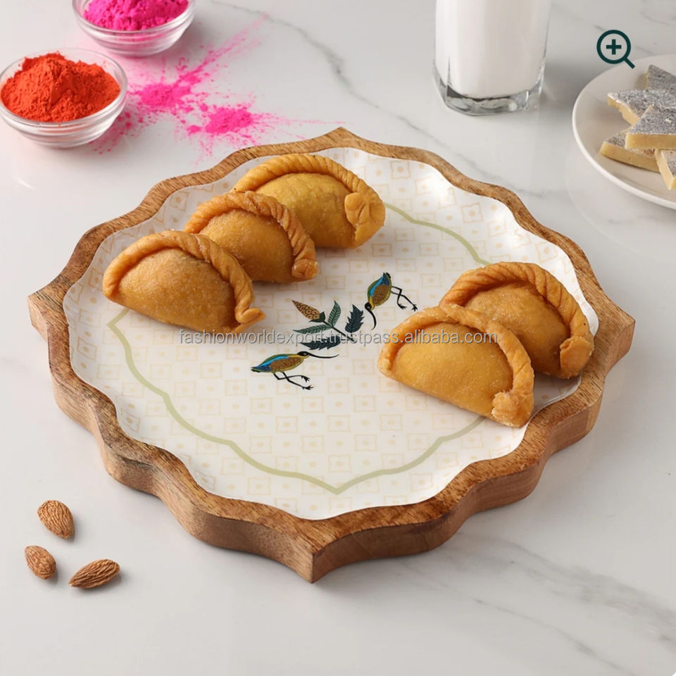 แผ่นเสียงไม้คุณภาพระดับพรีเมี่ยมดีไซน์พิมพ์ลายและขอบหยักเหมาะสำหรับงานรื่นเริงผลไม้แห้งและการจัดแสดงแบบอินเดีย