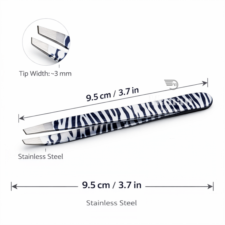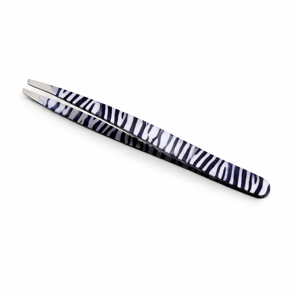 แหนบถอนขนคิ้วลายม้าลายคุณภาพพรีเมียม ทำจากสแตนเลส ปลายเฉียง สำหรับกำจัดขนอย่างแม่นยำ อุปกรณ์เสริมความงาม