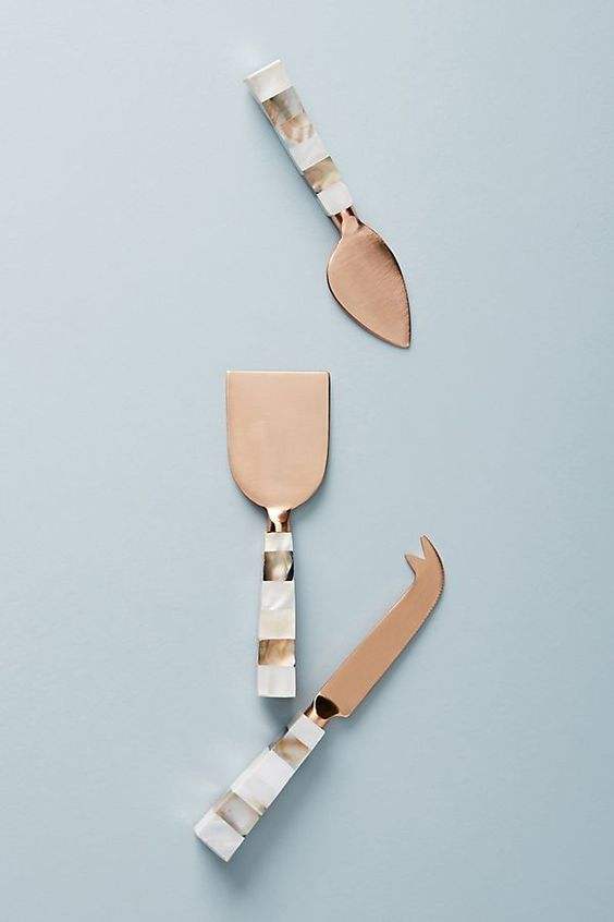 ชุดเขียงชีสสแตนเลสคุณภาพพรีเมียม พร้อมมีดเคลือบ PVD สีทอง ที่ปาดชีส ที่ตัดชีส ด้ามจับหินอ่อน อุปกรณ์ครัว