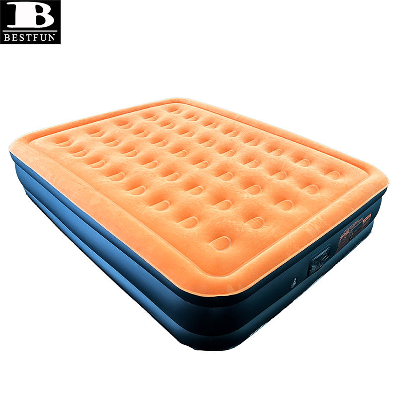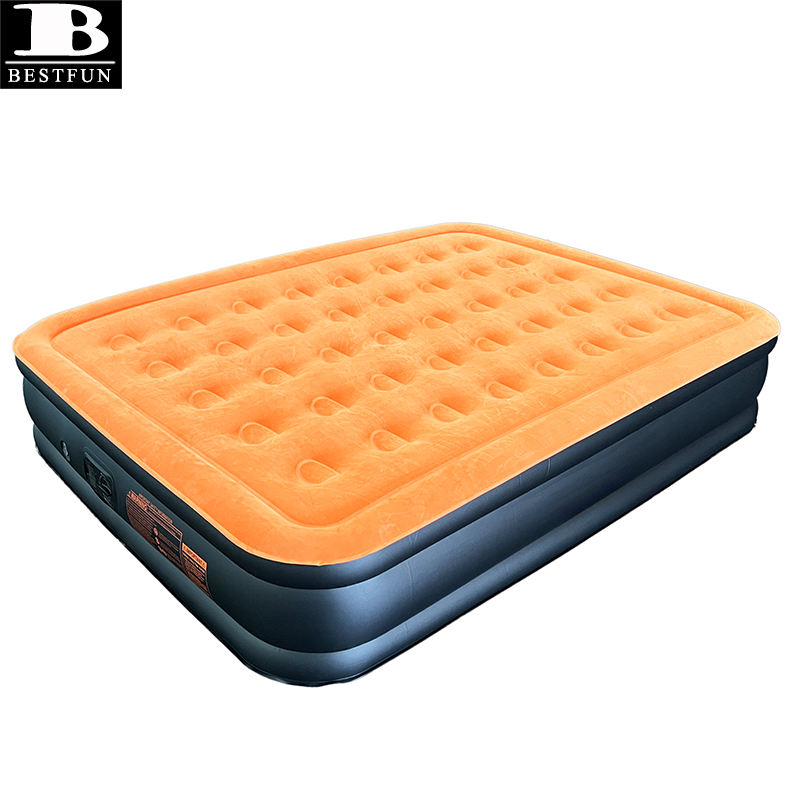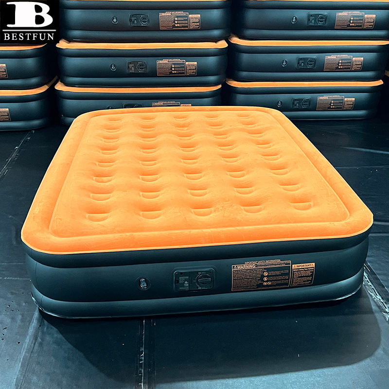 ที่นอนเป่าลมขนาดควีนไซส์สีส้มความสูงยกระดับพร้อมปั๊มไฟฟ้าในตัวสำหรับการนอนหลับที่สะดวกสบาย