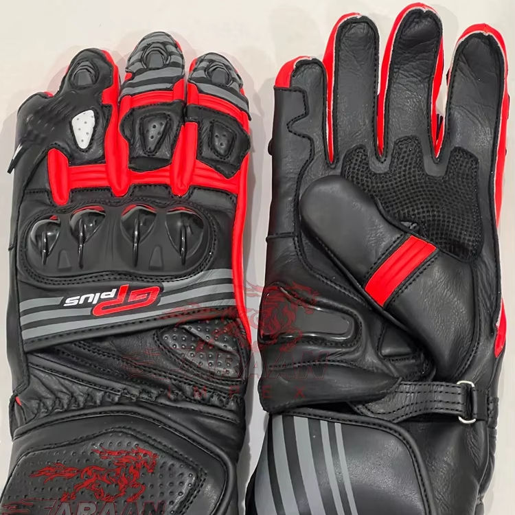 ถุงมือหนังสำหรับขี่มอเตอร์ไซค์แบบพรีเมียม พร้อมแผ่นป้องกันข้อนิ้วแบบแข็ง แผ่นเสริมฝ่ามือ ป้องกันแรงกระแทก และเกราะนิ้วมือ