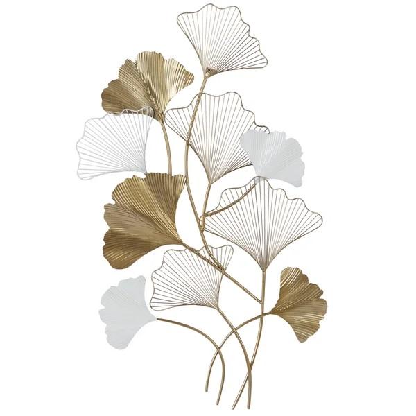แบบพรีเมี่ยมพร้อมส่งใบไม้สีทองและสีขาวป้ายศิลปะแขวนผนังโลหะแนว3D สำหรับบ้านโรงแรมห้องนั่งเล่น