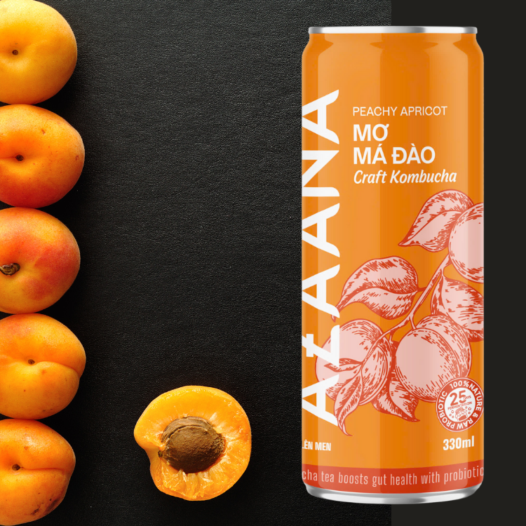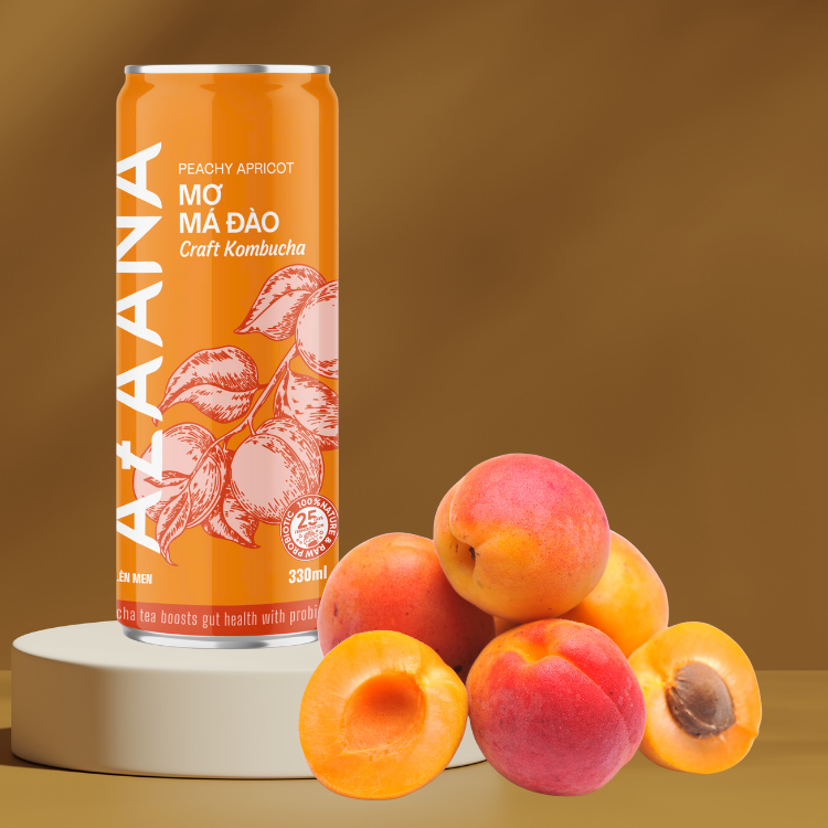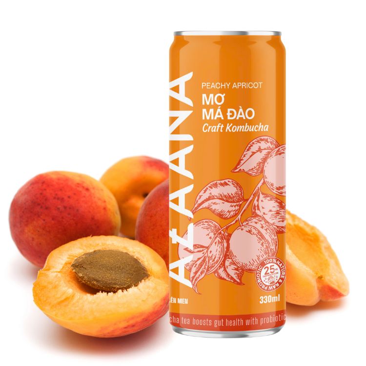 ชาคอมบูชาแบบพรีเมี่ยมเครื่องดื่มแอปริคอตพีชเย็นเข้มข้นผลิตจากเวียดนาม