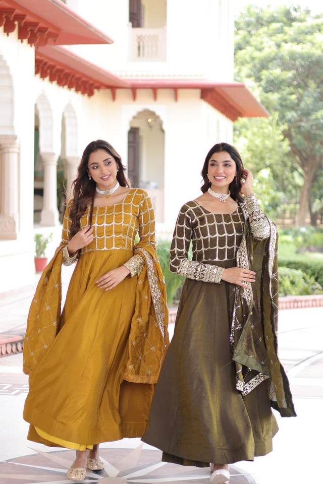 ชุดเดรสพร้อมผ้าคลุมไหล่พรีเมียม รุ่น Nc Vichitra ประดับเลื่อมและงานปักดิ้นทองอย่างดี