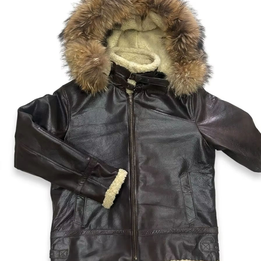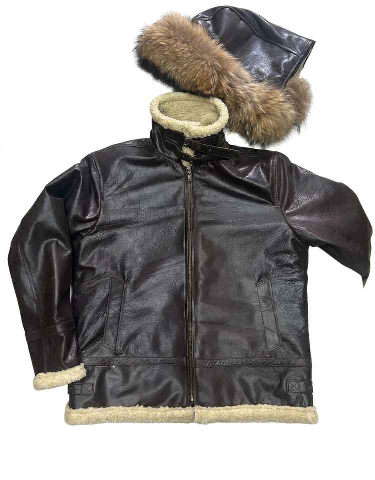 แจ็คเก็ตบอมเบอร์หนังวัวแท้พรีเมียม B3 แบบมีฮู้ดถอดได้ บุขนเฟอร์เทียม ซิปปิด สำหรับผู้ชาย เหมาะสำหรับฤดูใบไม้ร่วง