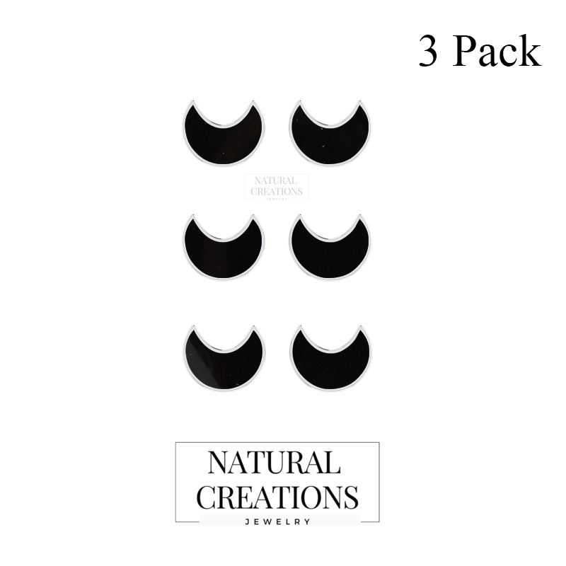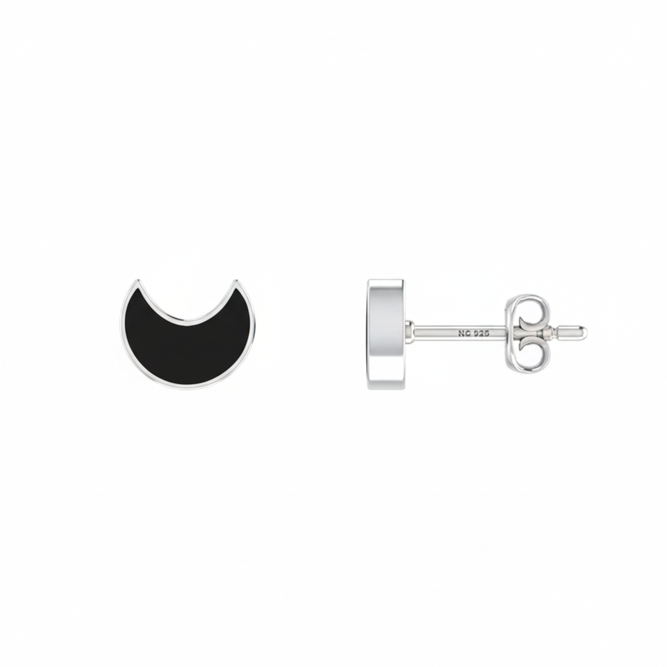 ต่างหูเงินแท้ 925 ประดับมุกน้ำเค็มสีดำทัวร์มาลีนทรงพระจันทร์ งานฝังแบบ Bezel คุณภาพสูง ขนาด 7 มม.