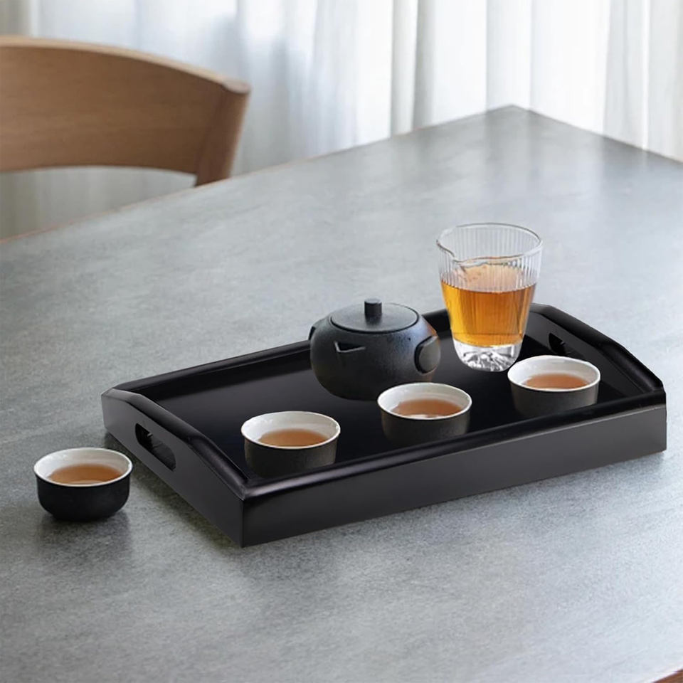 ถาดเสิร์ฟไม้ทรงสี่เหลี่ยมพรีเมียม ดีไซน์เรียบหรูสไตล์ชนบท ลายดอกไม้ สำหรับเทศกาลดีวาลี รอมฎอน ชา ขนม ของว่าง อาหารเช้า ใช้ในบ้าน
