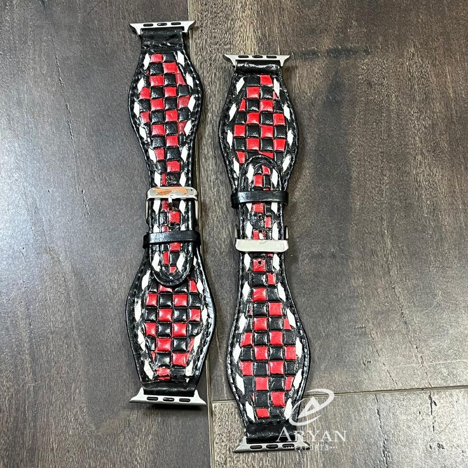 Product name:Hand Tooled Checkered Leather Smart Watch Band