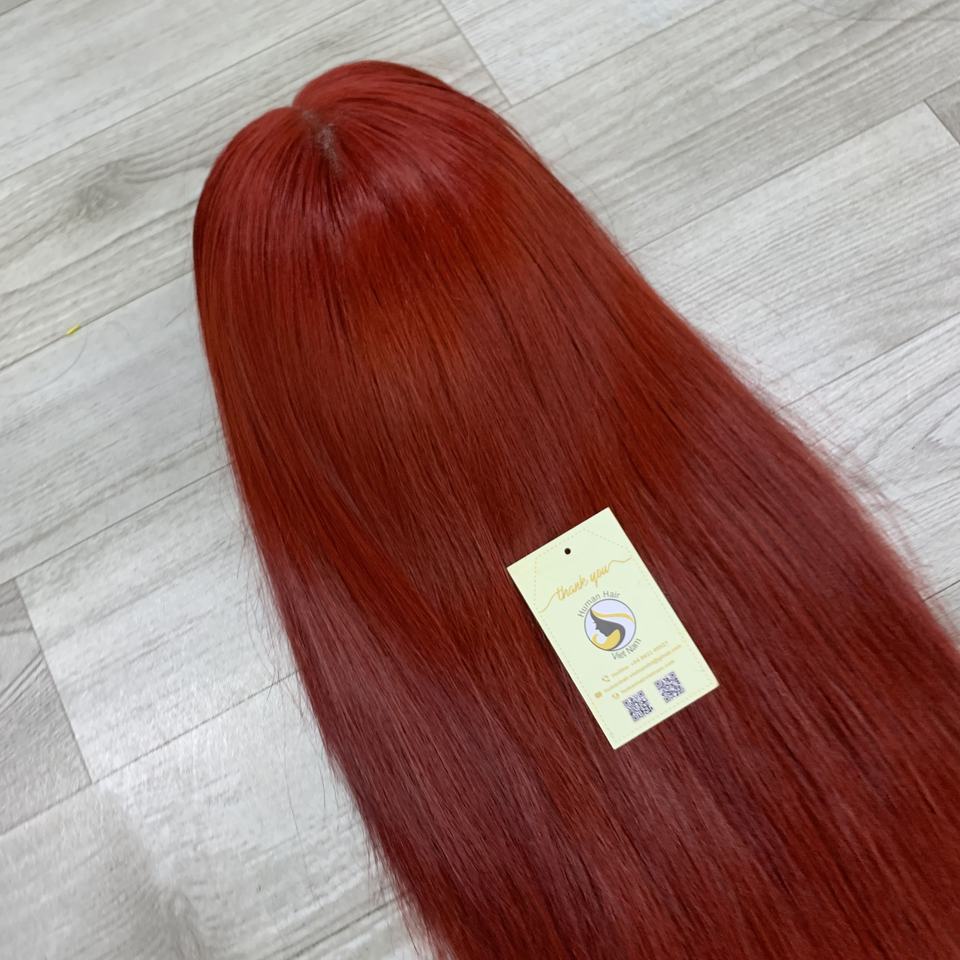 วิกผมสีแดงพรีเมียม ผมแท้เวียดนาม สีเบอร์กันดี วิกแบบไม่ต้องใช้กาวติด วิกผมเวียดนามแท้แบบตรงธรรมชาติ วิกผมสวิส