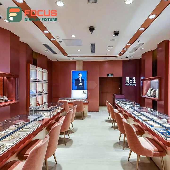 ตู้โชว์กระจกสำหรับเครื่องประดับ พรีเมียม สีแดง ดีไซน์หรูหรา ทันสมัย สำหรับร้านค้า พร้อมไฟ LED คุณภาพสูง
