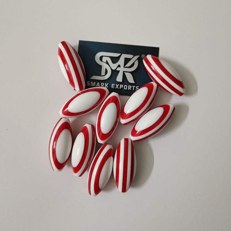 ลูกปัดเรซินรูปวงรีสีแดงสีขาวเป็นมิตรกับสิ่งแวดล้อมระดับพรีเมียมลายทางเรียบขัดสำหรับสร้อยข้อมือและสร้อยคอแบบทำมือ