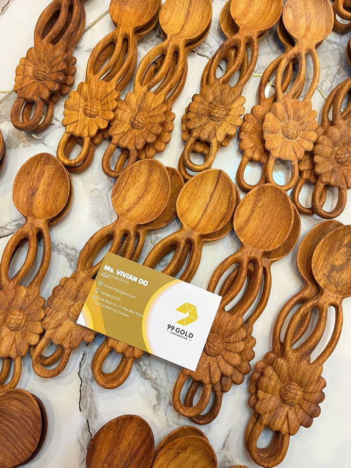 Premium Red Wood Spoon With Three Leaf Handle Natural Wooden Spoon Wooden Coffee Scoop Tea Coffee Scoop Custom Logo Vietnam