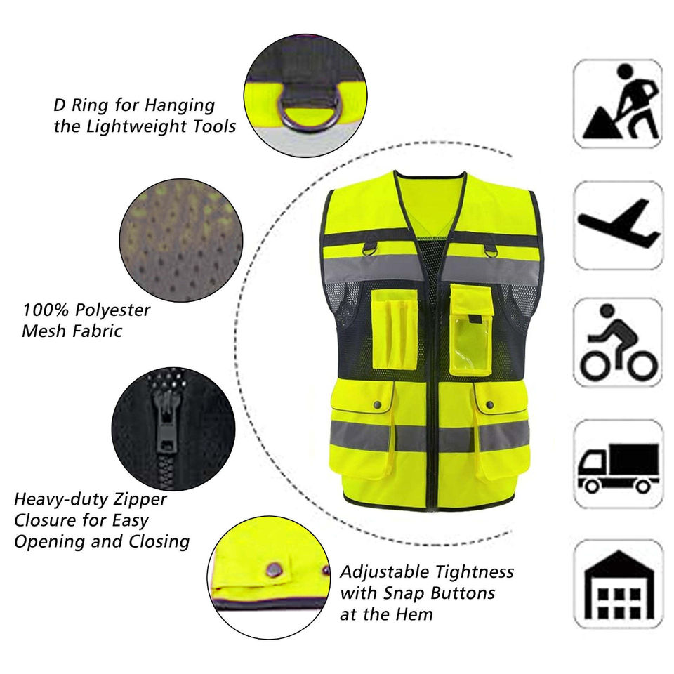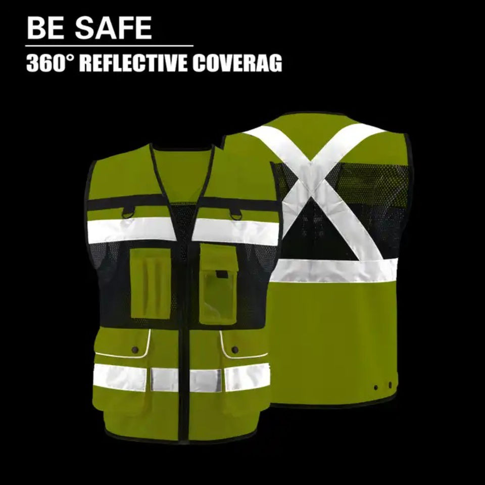 เสื้อกั๊กสะท้อนแสงแบบพรีเมียมพร้อมกระเป๋าหลายช่อง ชุดทำงานที่มองเห็นได้ชัดเจนสำหรับงานก่อสร้าง การจราจร คลังสินค้า และอุตสาหกรรม