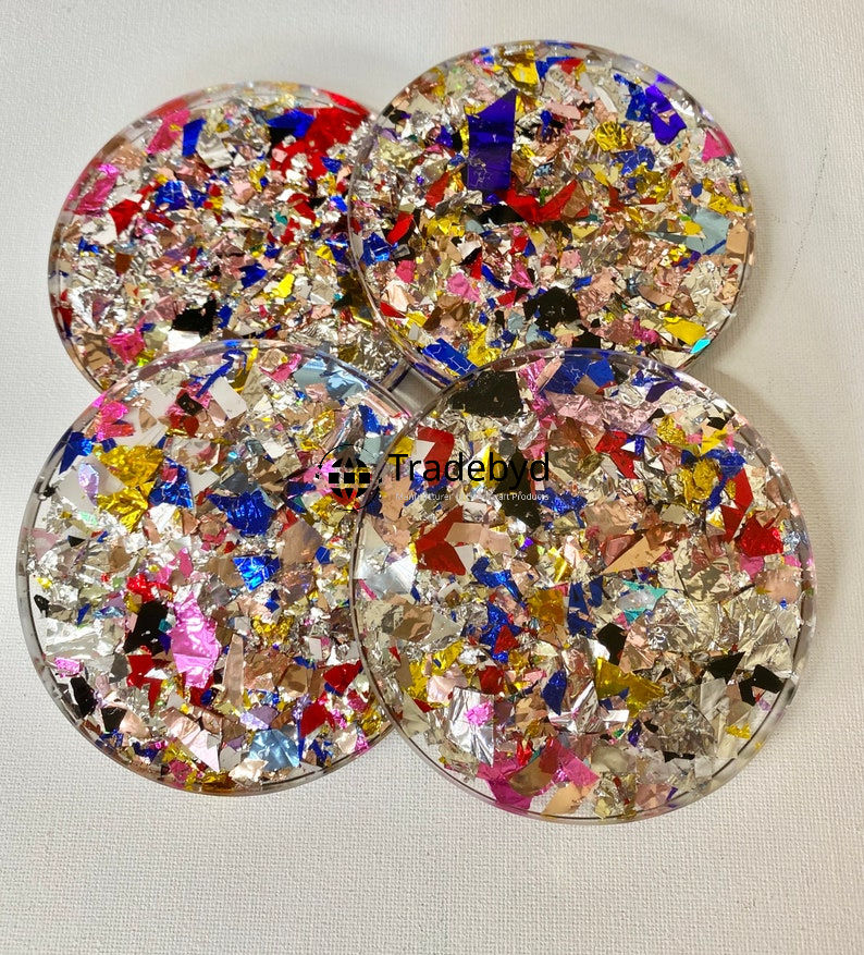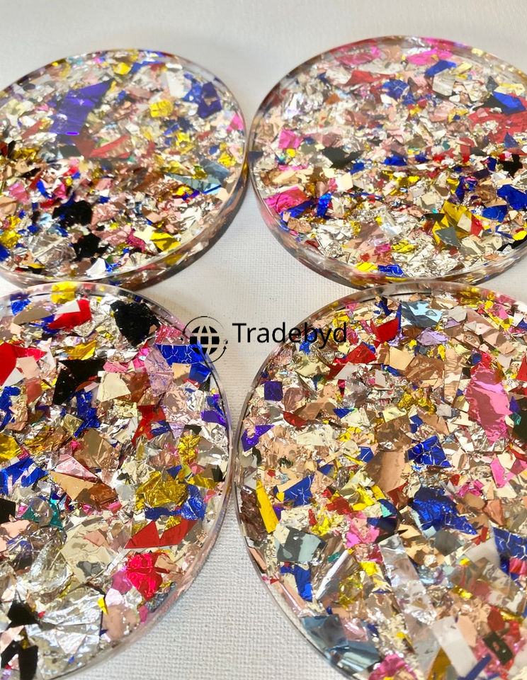 แผ่นรองแก้วเรซิ่นพรีเมียม ชุดแผ่นรองแก้วทำมือสุดหรู สำหรับโต๊ะอาหาร โต๊ะกาแฟ Tradebyd ขนาด 4x4 นิ้ว รูปทรงสี่เหลี่ยม สีตามสั่ง