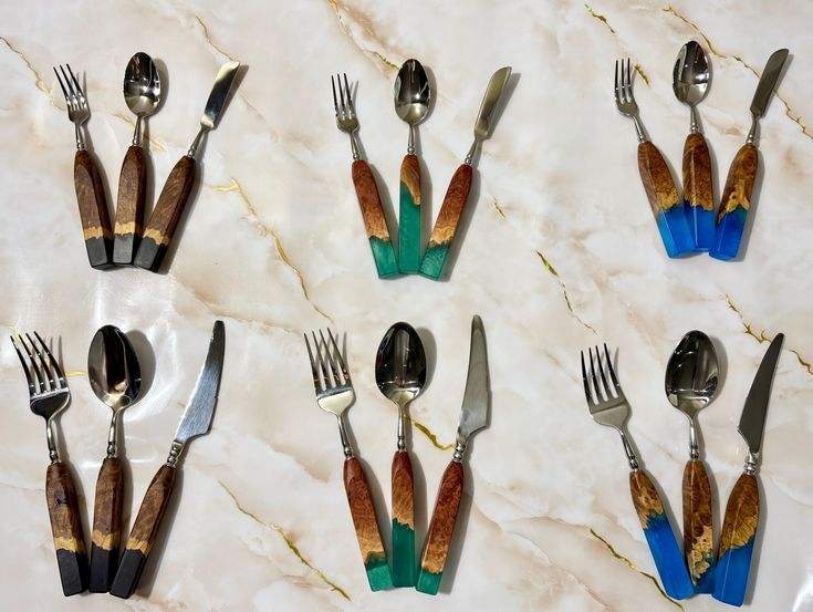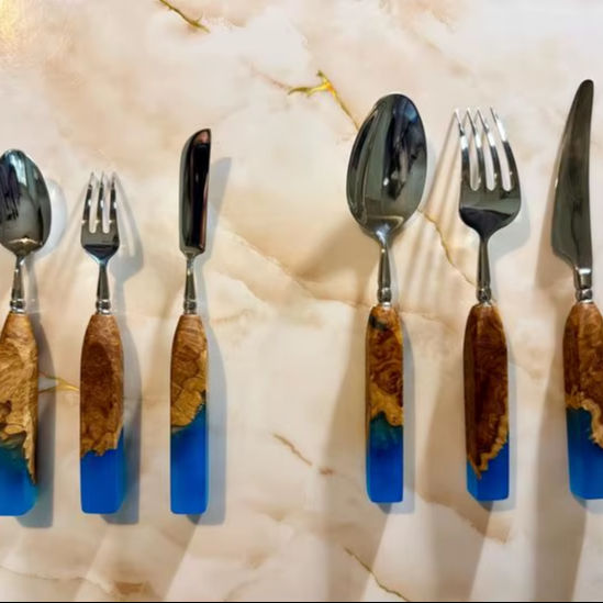 ชุดช้อนส้อมมีดสแตนเลสพร้อมด้ามเรซิ่นคุณภาพสูง สำหรับรับประทานอาหาร ใช้ซ้ำได้ เป็นมิตรกับสิ่งแวดล้อม ปลอดภัยสำหรับเครื่องล้างจาน เหมาะสำหรับงานเลี้ยง