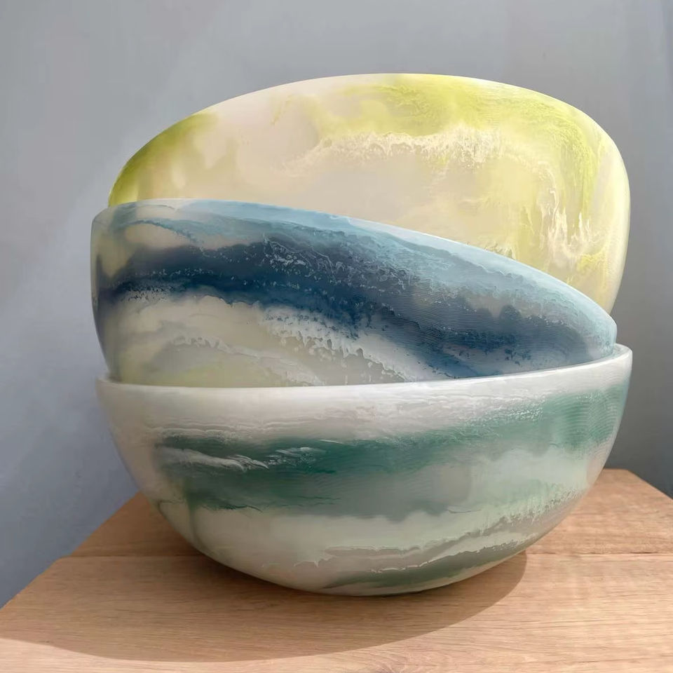 ชามสลัดเรซิ่นพรีเมียม ชามเสิร์ฟตกแต่งสำหรับบ้าน ชามผลไม้เรซิ่นทำมืออย่างมีศิลปะ ของตกแต่งกลางโต๊ะ