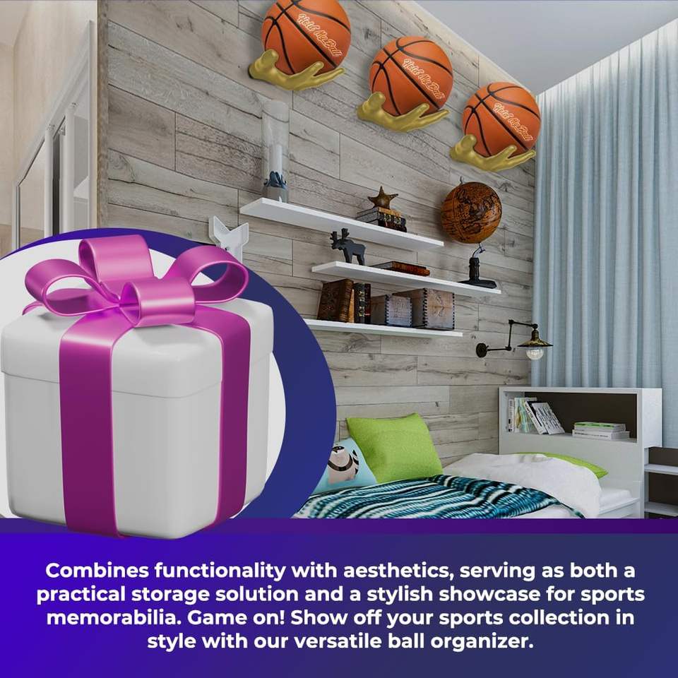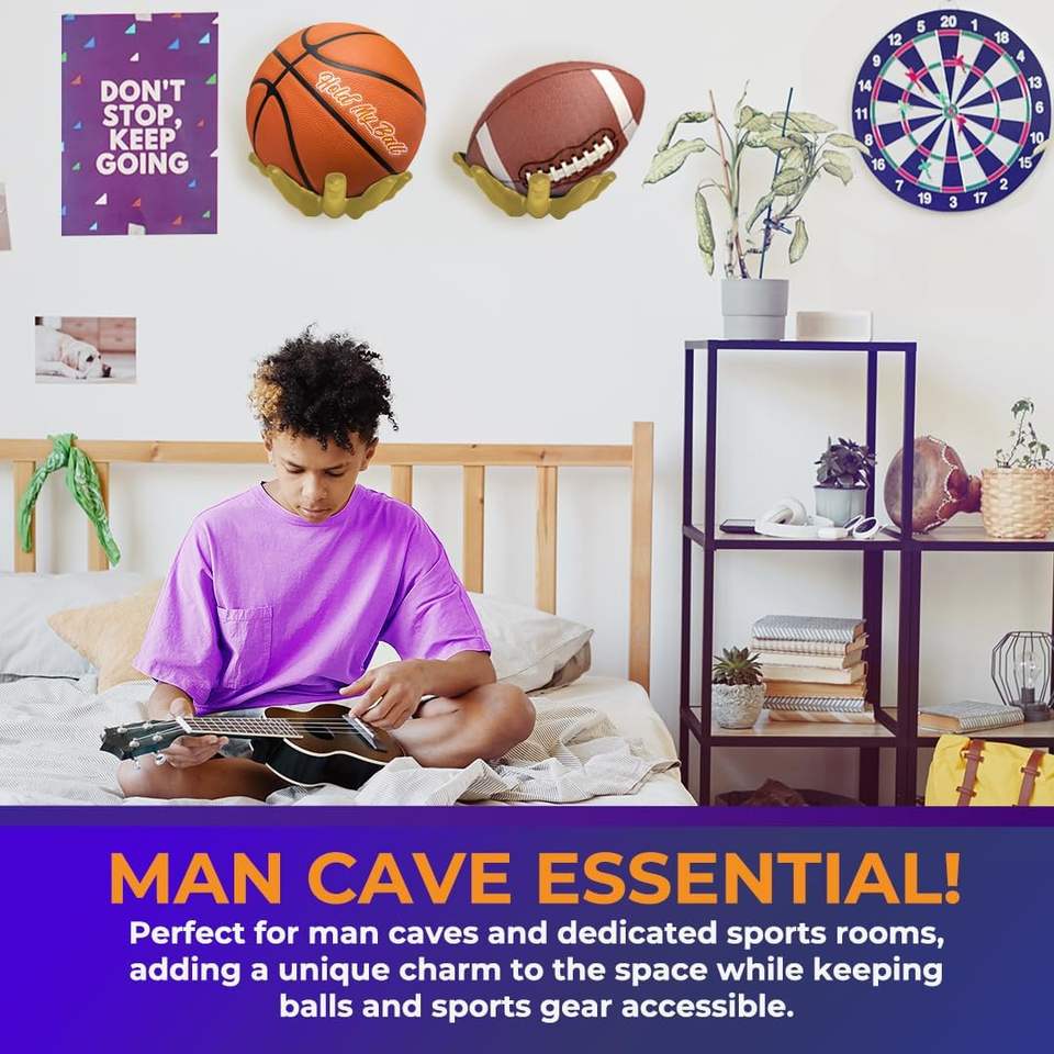 ที่แขวนลูกบอลแบบติดผนัง Hold My Ball Premium Gold Resin สำหรับกีฬาต่างๆ เช่น บาสเกตบอล ฟุตบอล วอลเลย์บอล รักบี้