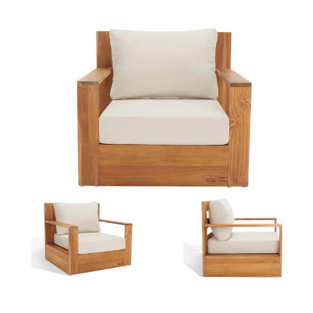 เก้าอี้ร้านอาหารไม้สักคุณภาพสูงเฟอร์นิเจอร์ระดับพรีเมียมสำหรับโรงแรมวิลล่าและอื่นๆพร้อมเบาะนั่งสบายจากอินโดนีเซีย