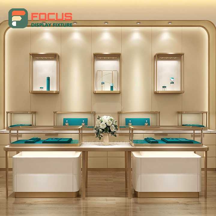 เคาน์เตอร์ไม้สำหรับร้านค้าปลีกเครื่องประดับระดับพรีเมียม ตู้โชว์กระจกคุณภาพสูง โครงสร้างโลหะ สำหรับร้านขายเครื่องประดับ