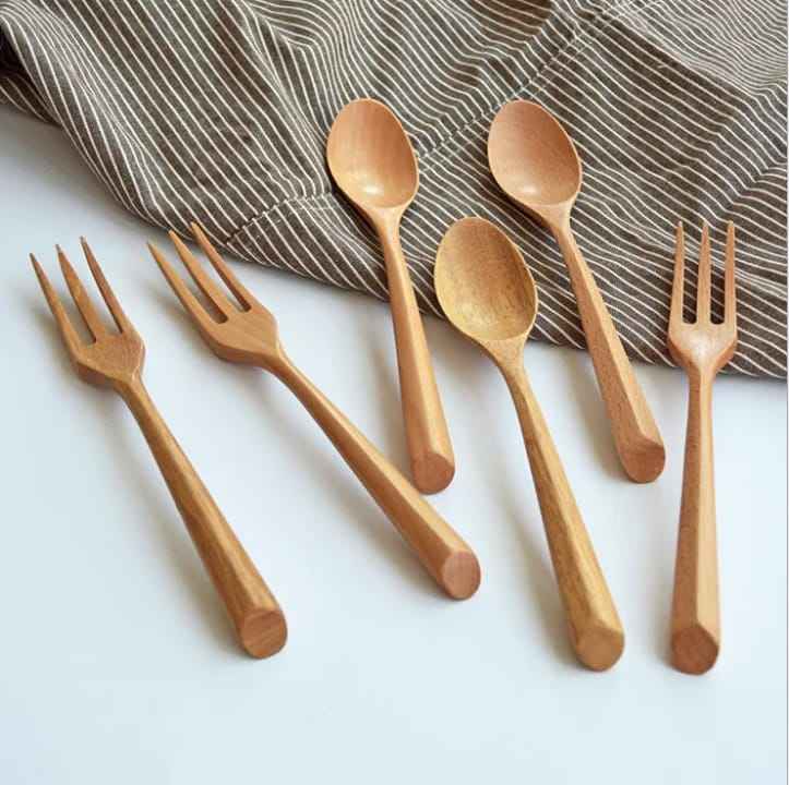 ชุดช้อนส้อมไม้สีเข้มแบบพรีเมียม ใช้ซ้ำได้ - ช้อนและส้อมไม้เนื้อแข็งทำมือจากวัสดุธรรมชาติเพื่อการรับประทานอาหารอย่างยั่งยืนและเป็นมิตรกับสิ่งแวดล้อม