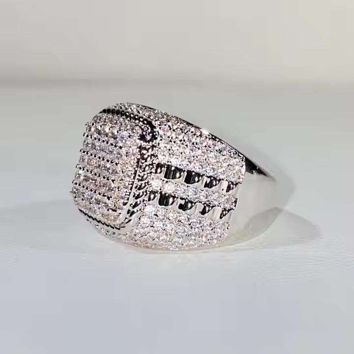 แหวนฮิปฮอปสำหรับทุกเพศ ประดับเพชรโมอิสซาไนต์เคลือบโรเดียมคุณภาพพรีเมียม ระยิบระยับ เหมาะสำหรับแฟชั่นประจำวันและโอกาสพิเศษ จากอินเดีย