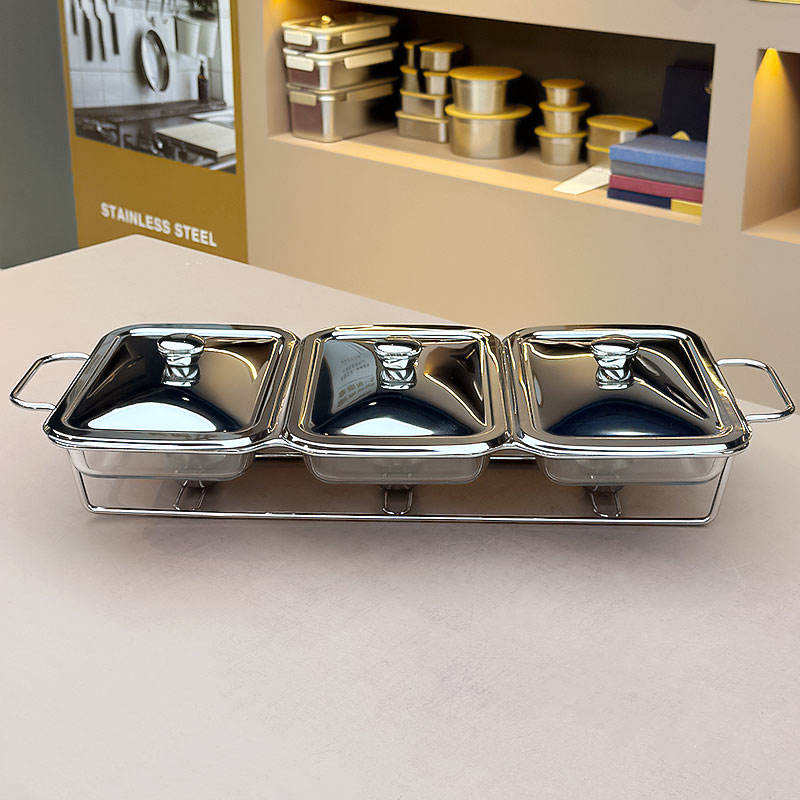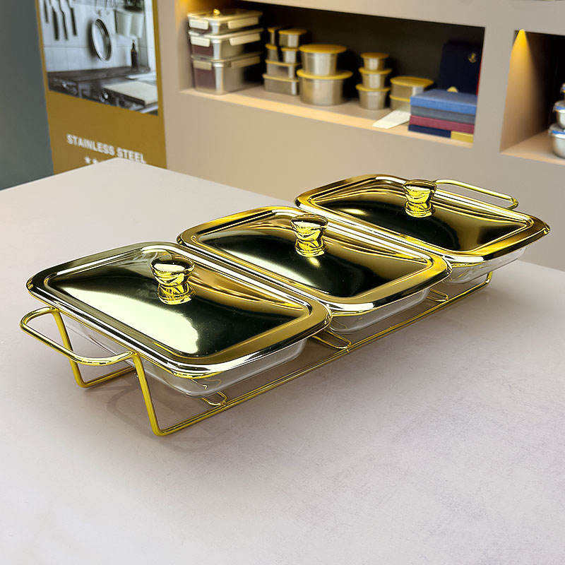 ถาดอุ่นอาหารทรงกลมพรีเมียม สแตนเลสสตีล พร้อมฝาแก้ว ดีไซน์สวยงาม สำหรับบุฟเฟ่ต์ โรงแรม และงานจัดเลี้ยง