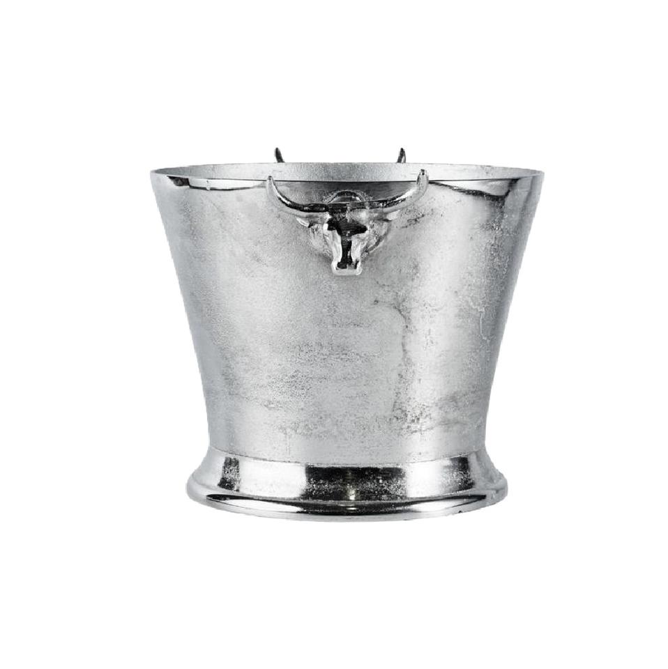 ถังแช่ไวน์ทรงกลมพรีเมียม ผลิตจากอะลูมิเนียมหล่อขึ้นรูป พร้อมหูจับรูปหัวกวางเรนเดียร์ สีเงิน สำหรับแชมเปญและเครื่องดื่ม