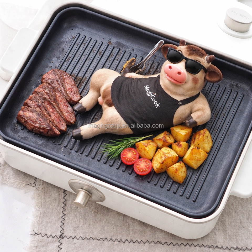 Dismountable น้ำมันสะสม, ไม่ติดพื้นผิวการปรุงอาหาร, ไม่มีควัน, ควบคุมอุณหภูมิ