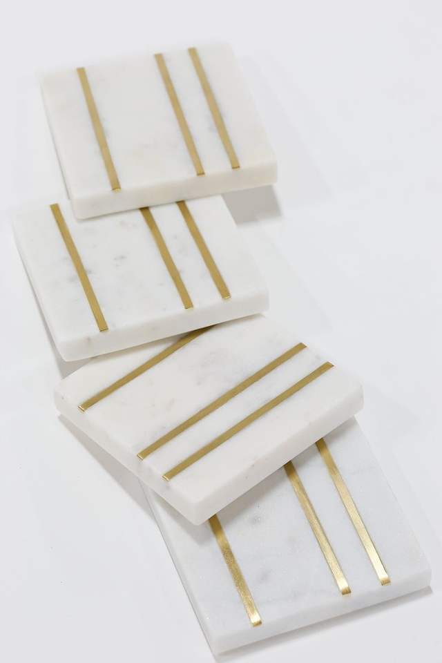 ชุดที่รองแก้วหินหินอ่อนสีขาวทรงกลมหรูหรา4ชิ้นสำหรับป้องกันโต๊ะและตกแต่งบ้านถาดรองแก้วขายดี