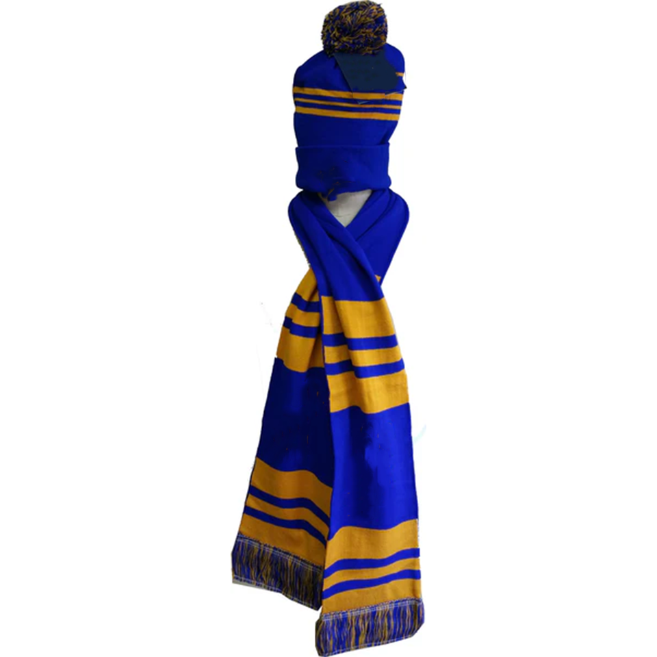 Premium Royal Blue Gold Striped Beanie and Scarf Set Greek Sorority Sports Fan Winter Warm Set For School &College Gear