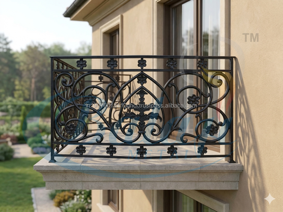 ราวระเบียงเหล็กหล่อตกแต่งระดับพรีเมียม ดีไซน์ทันสมัย ทนทาน สีเทาธรรมชาติ ขัดเงา สำหรับระเบียงบ้านหรู